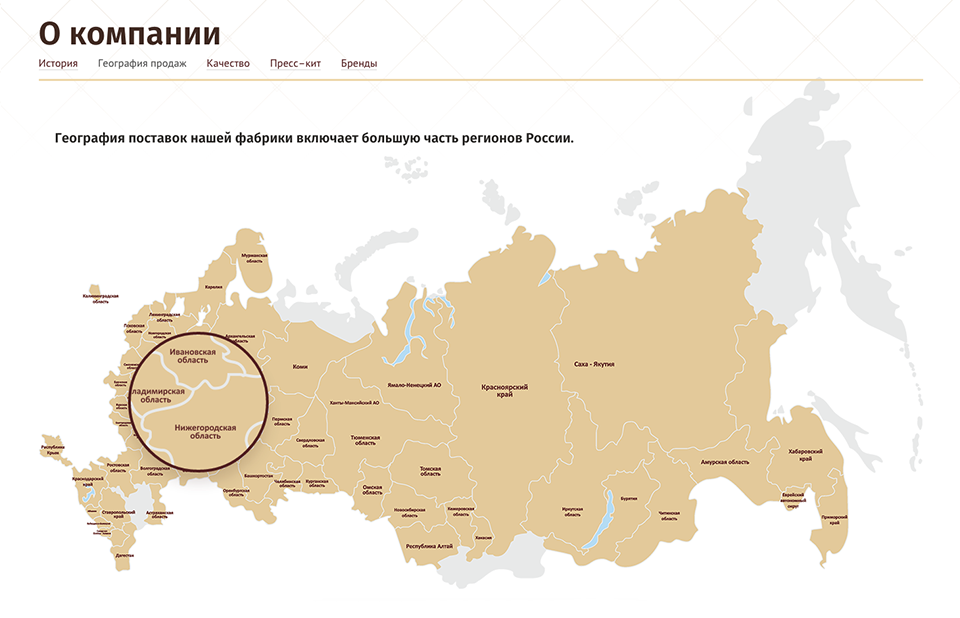 Целевой аудиторией сайта являются продавцы кондитерских изделий, и сайт разработан прежде всего для них. Особое внимание уделено каталогу продукции и новинкам фабрики. Также на сайте представлена основная информация о производстве.