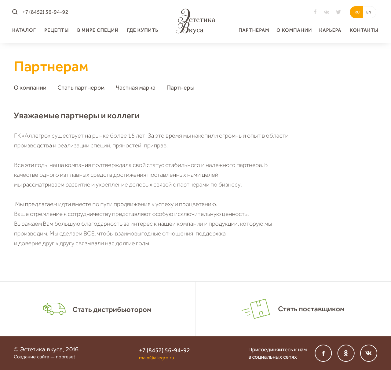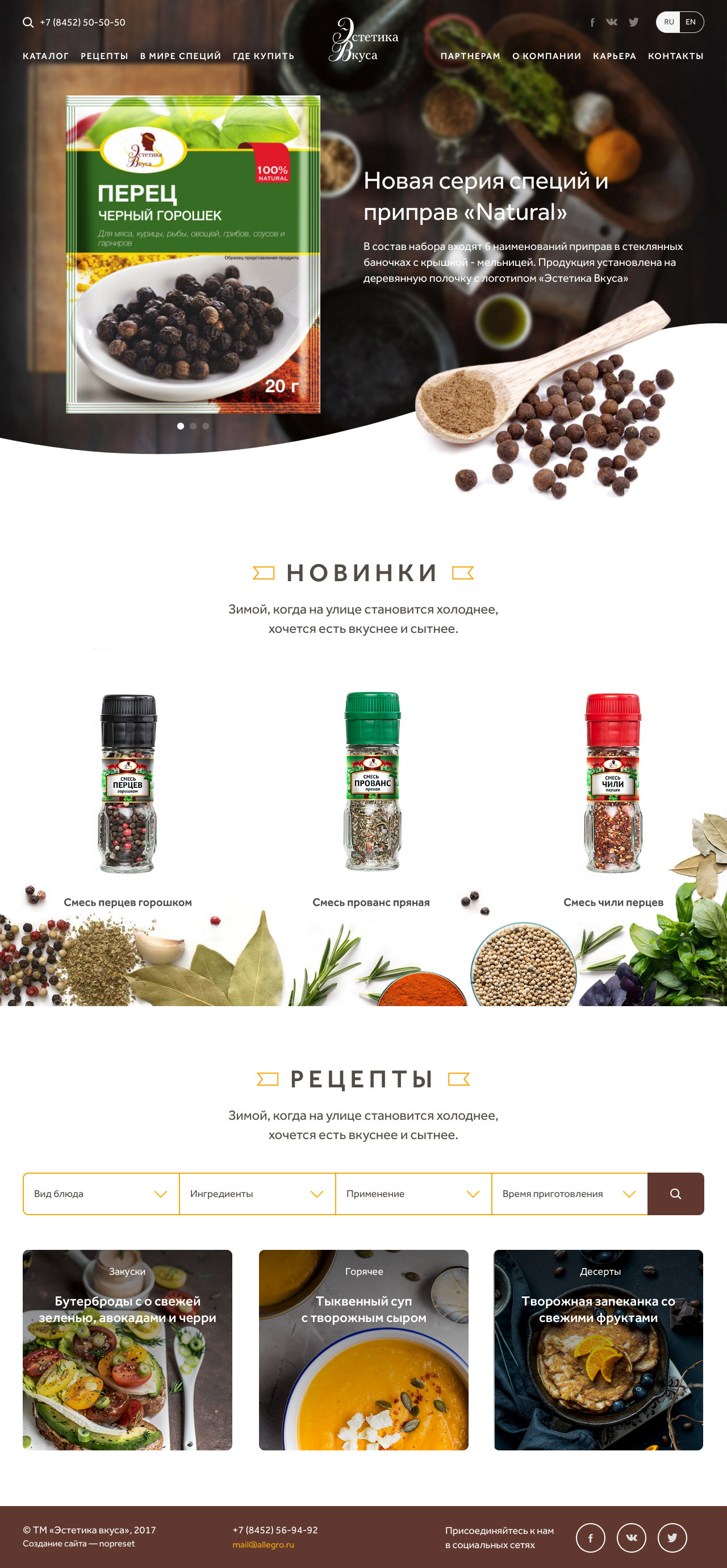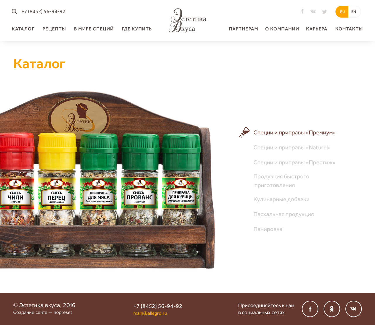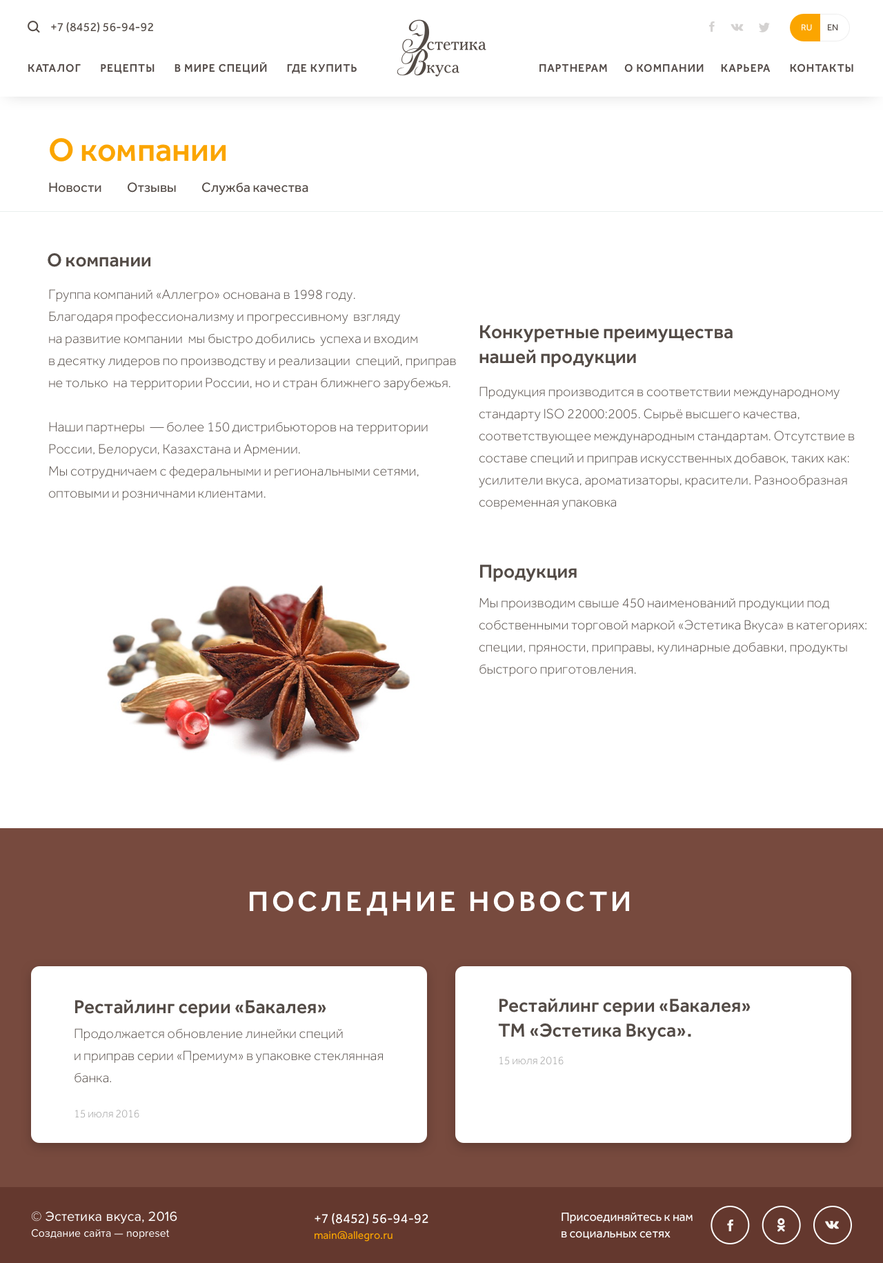 Сайт группы компаний «Аллегро», которая производит и продает специи и приправы на территории России, Беларуси, Казахстана и Армении.