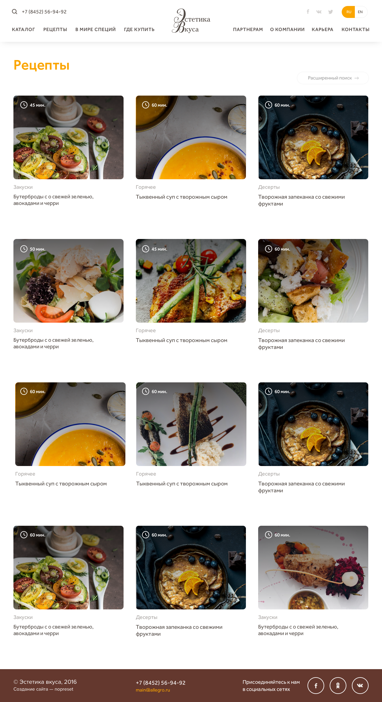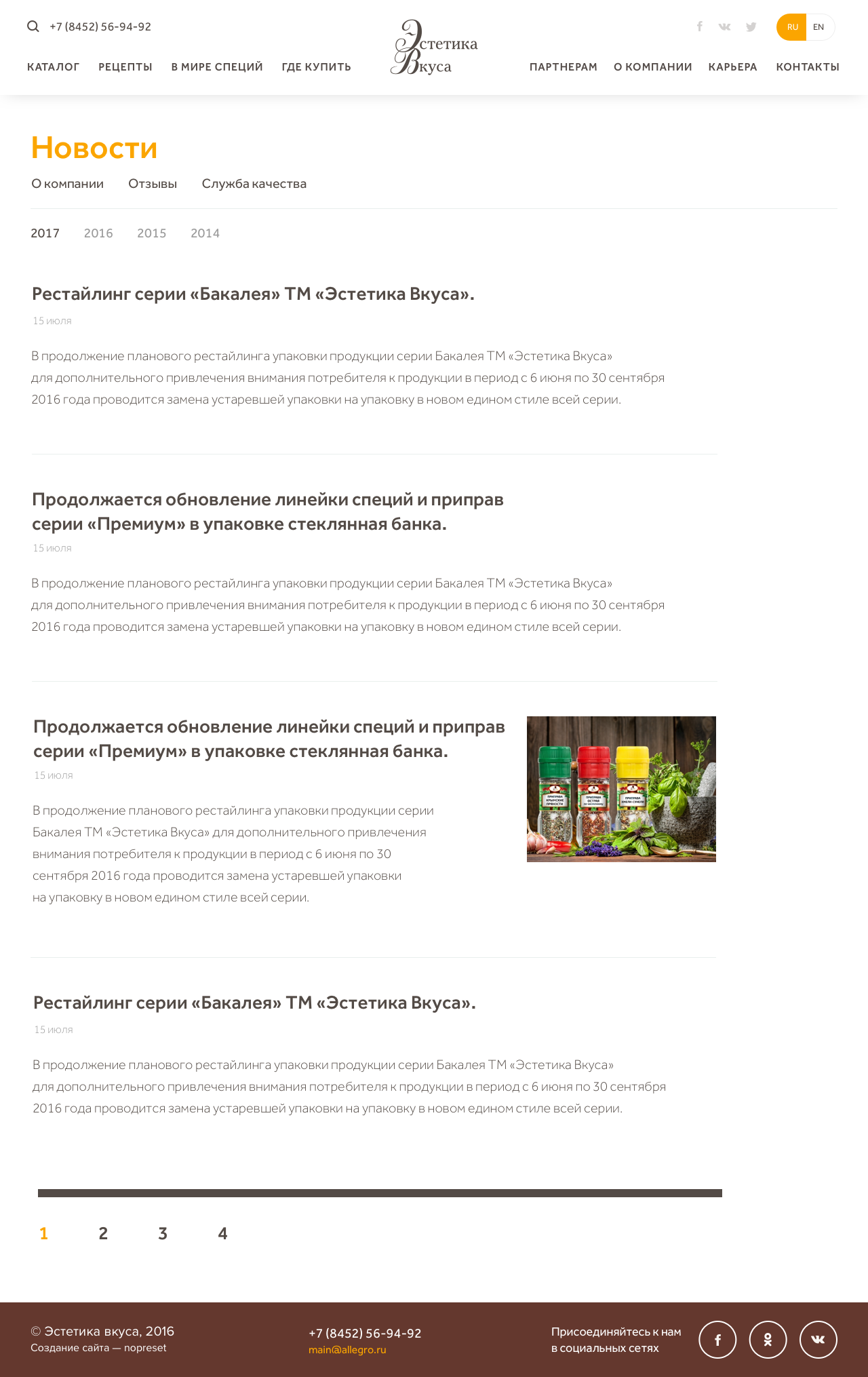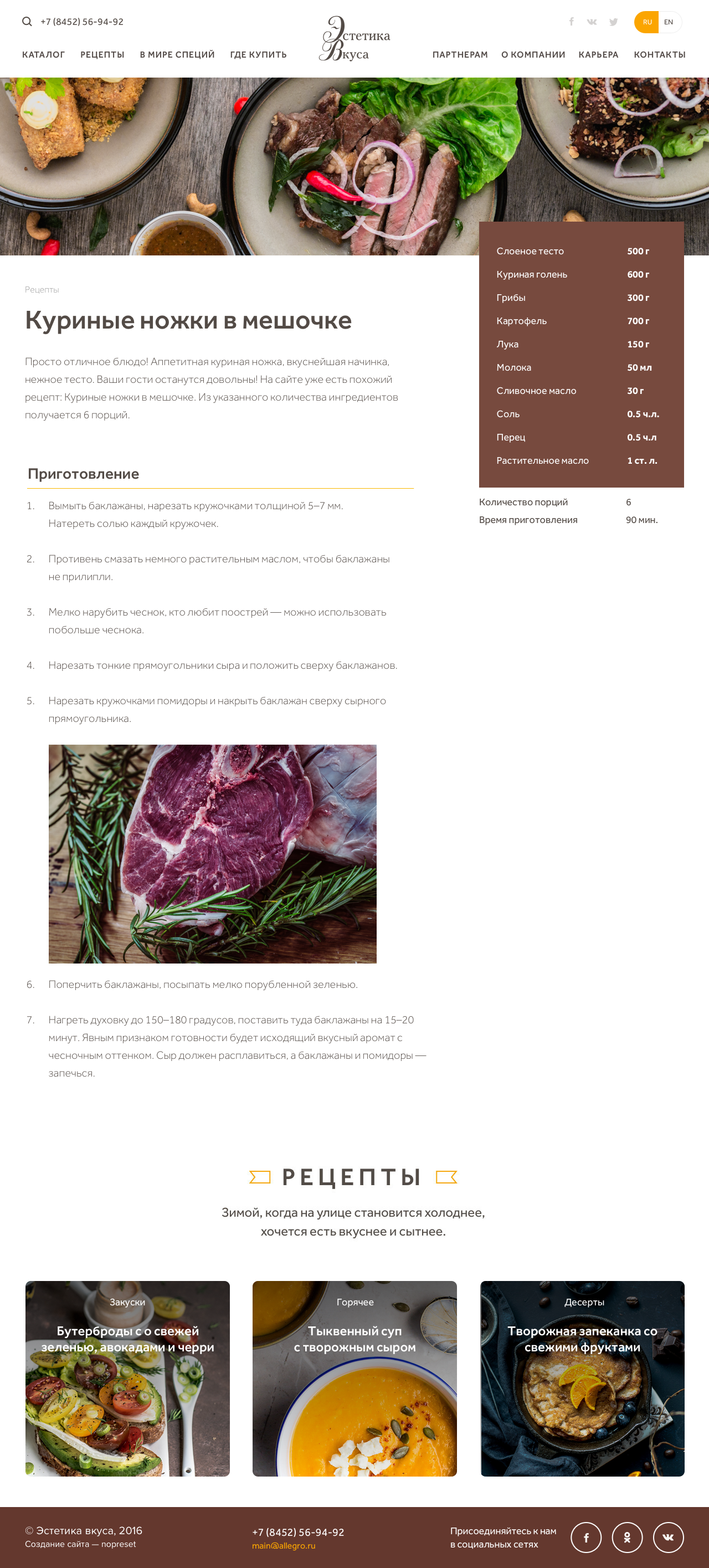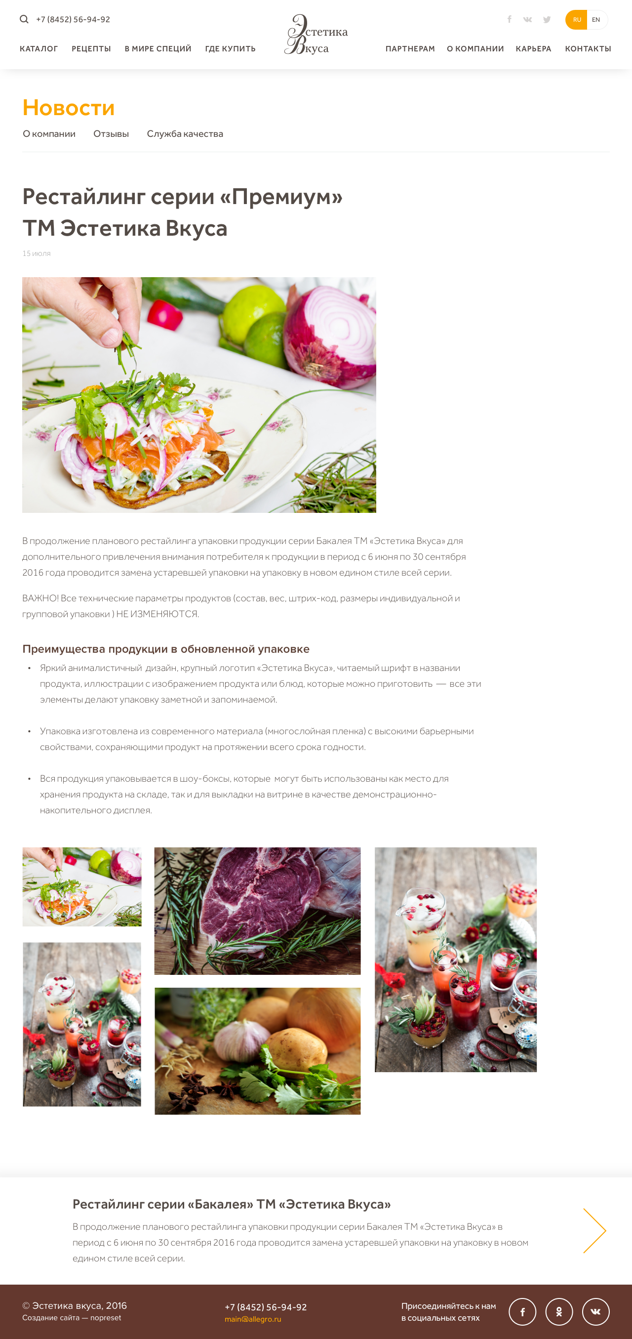 Сайт группы компаний «Аллегро», которая производит и продает специи и приправы на территории России, Беларуси, Казахстана и Армении.