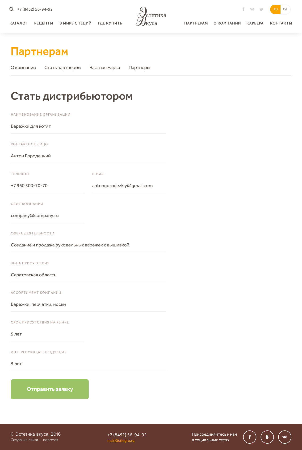 Можно оставить заявку на сотрудничество