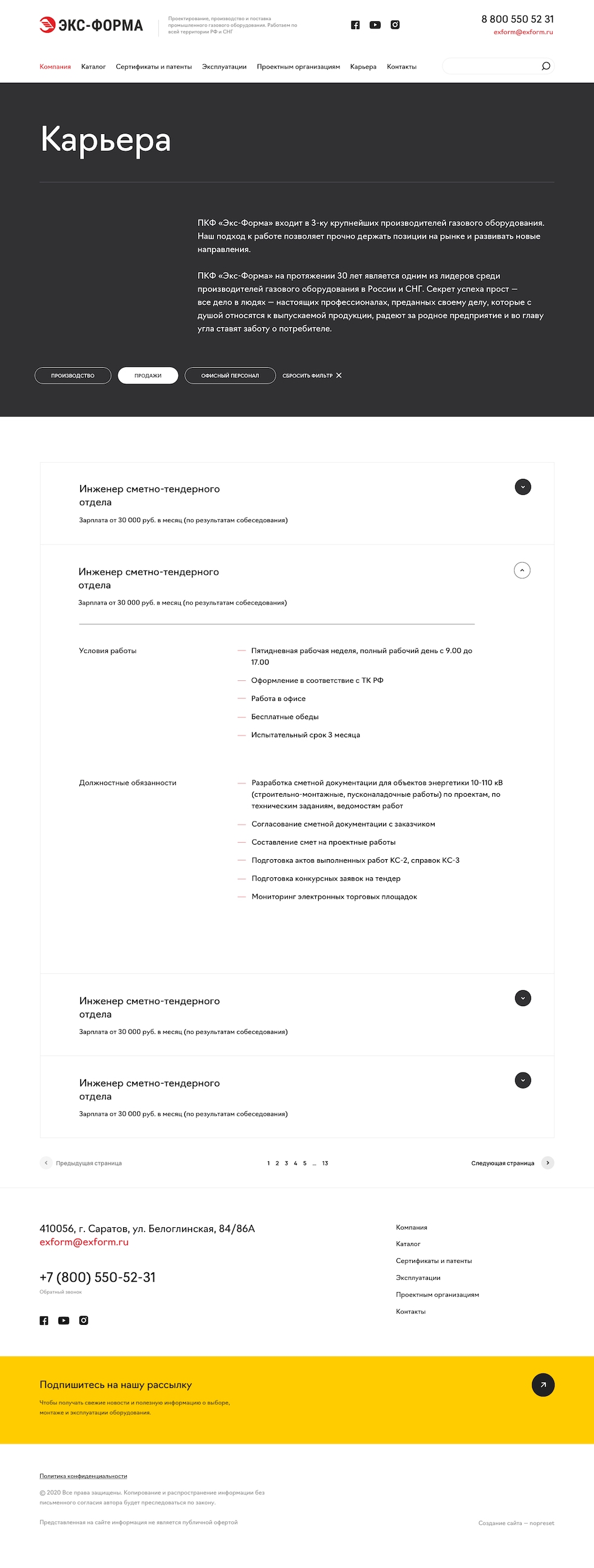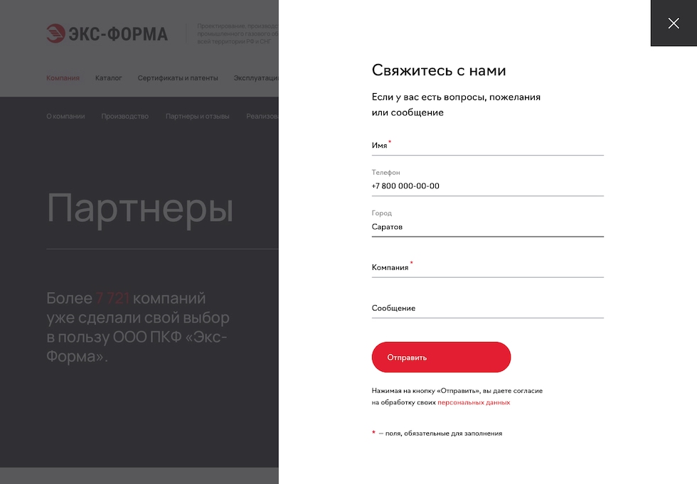 Все формы на сайте реализованы выдвижным блоком поверх страницы.