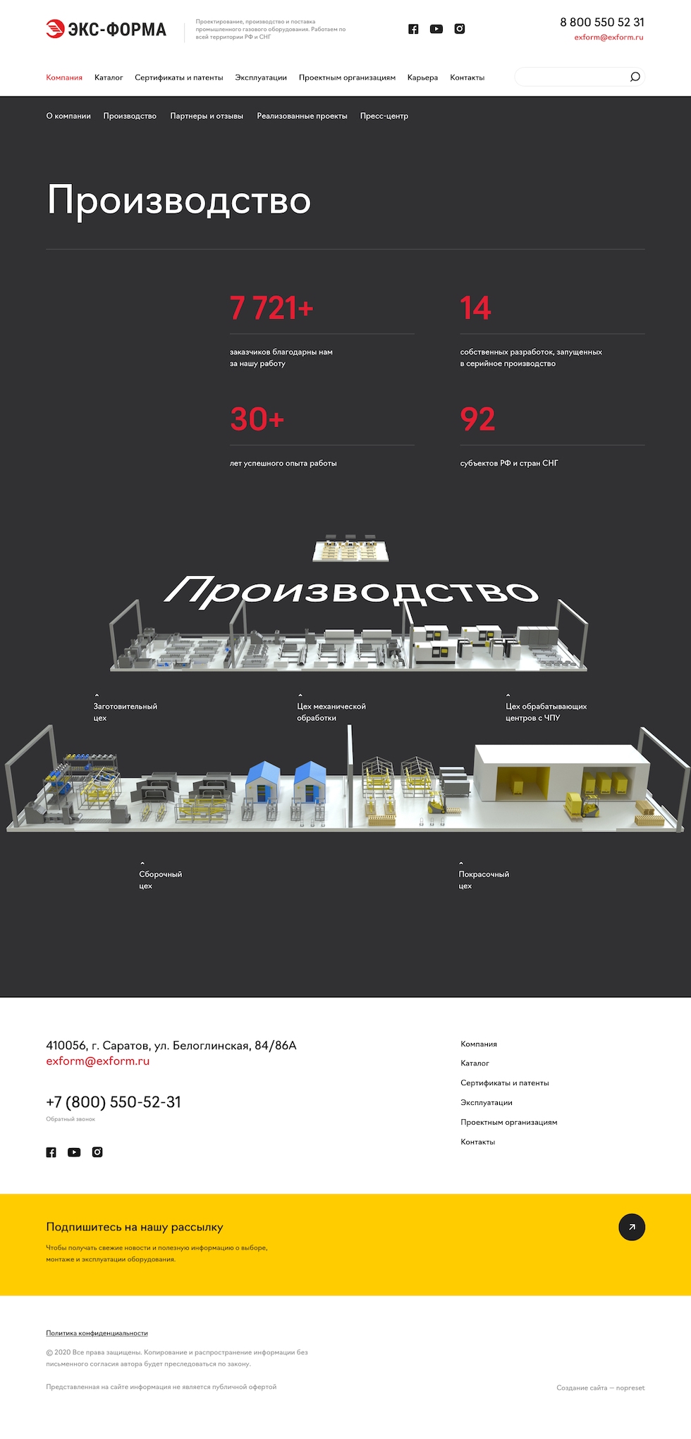 Для раздела разработана 3D-модель производства и реализована анимация блоков.