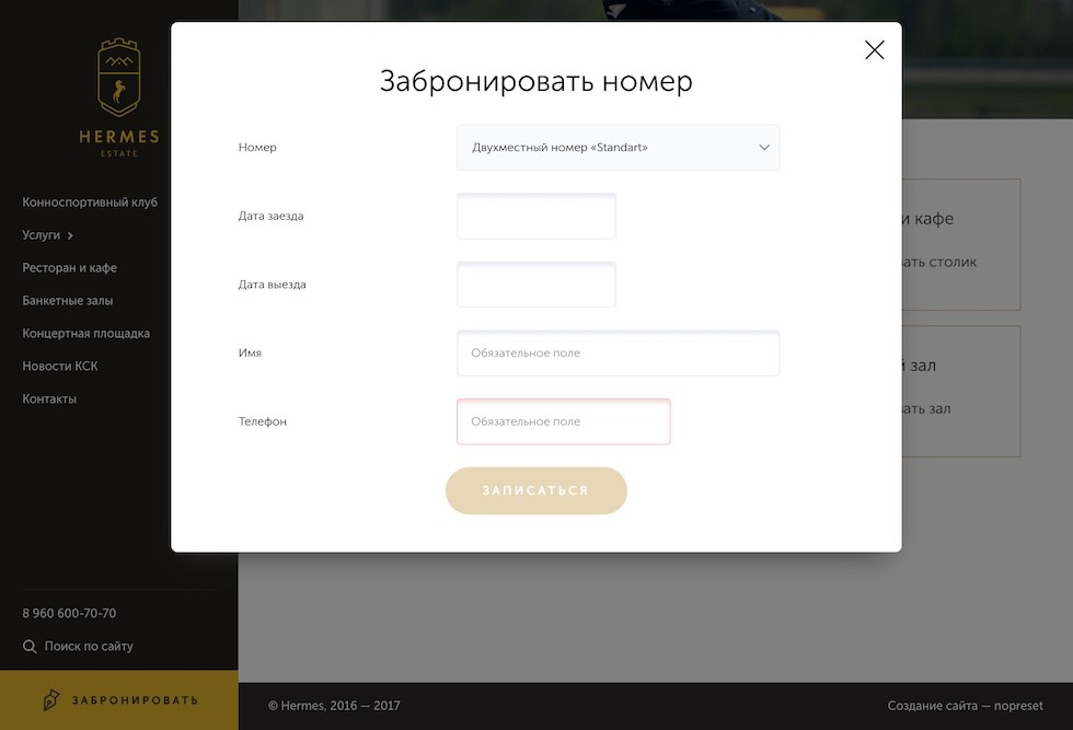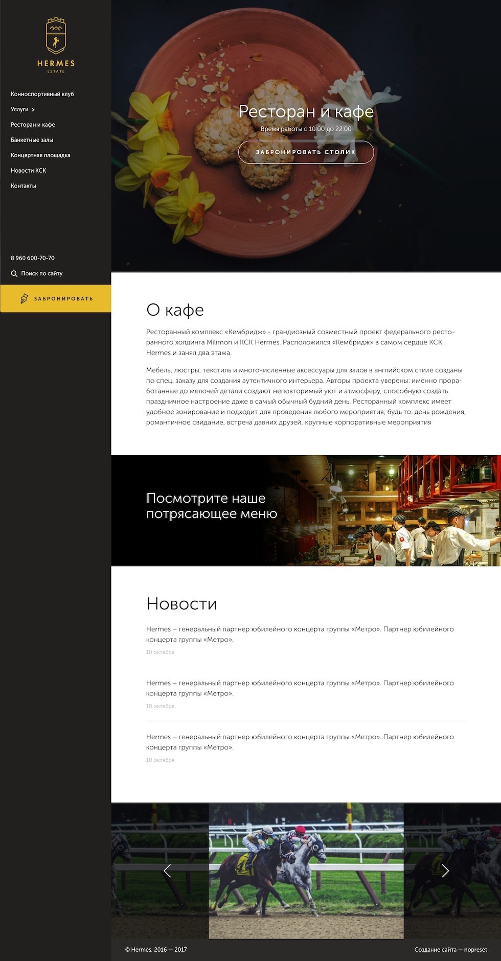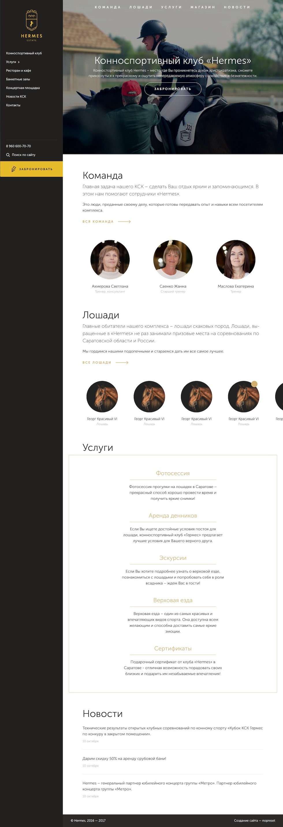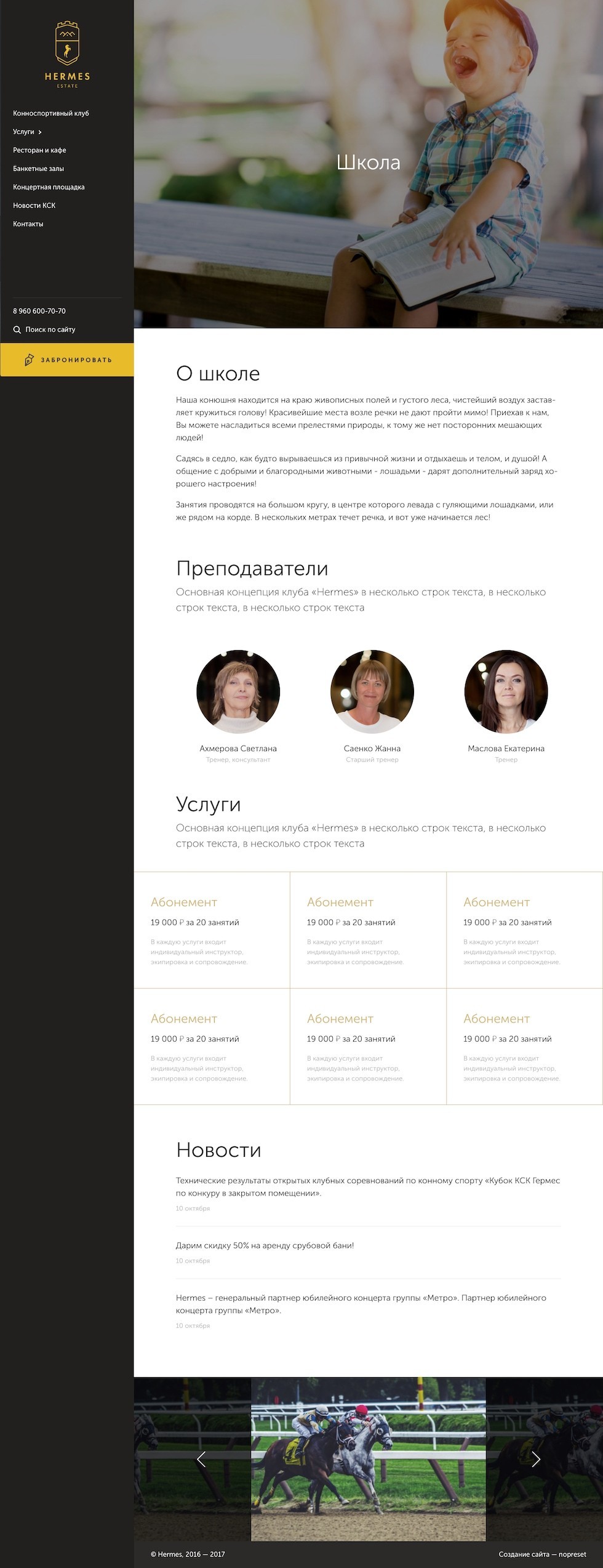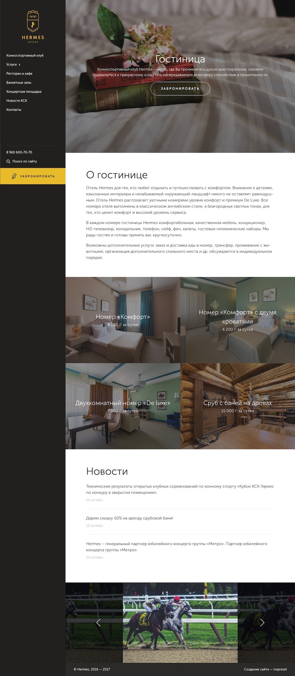 На главной — основная достопримечательность, конноспортивный клуб и основные услуги.