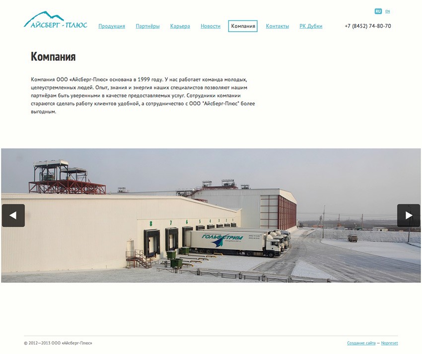 Создан простой и информативный двуязычный сайт компании. Здесь коротко описаны направления деятельности и возможности компании.