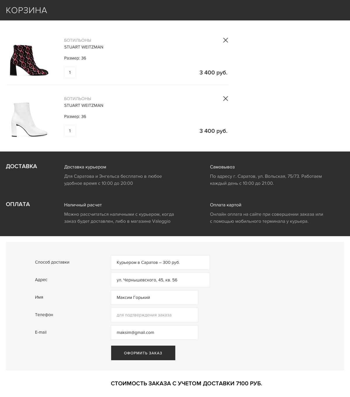 Интернет-магазин обуви Valegio