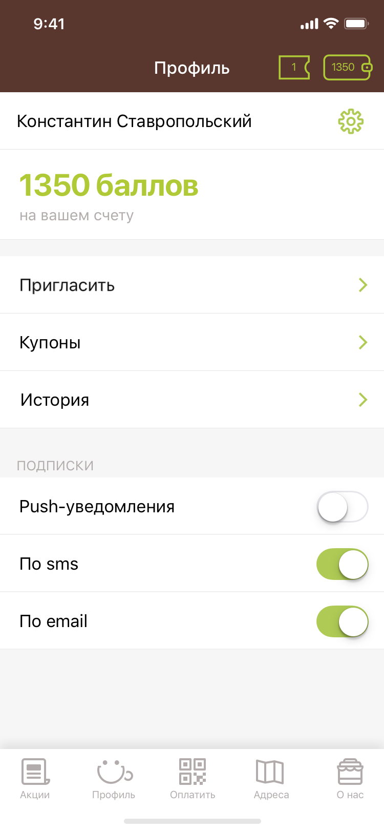 Постоянный доступ к операциям с баллами и история заказов.