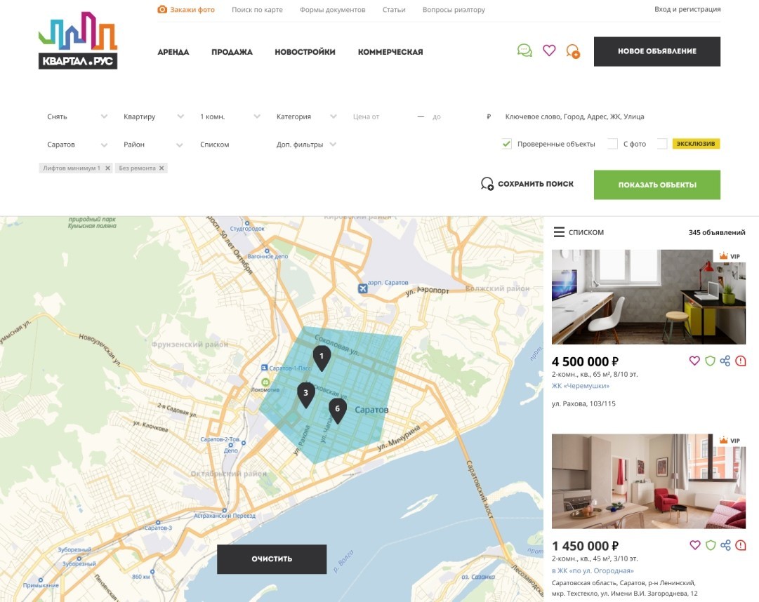 Современный портал недвижимости Саратова и области с прицелом на расширение географии.