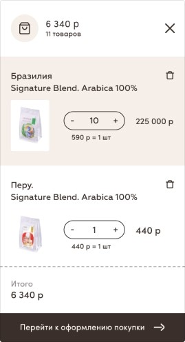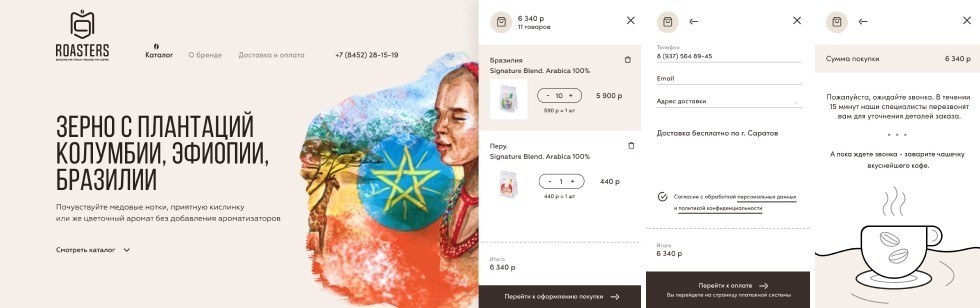 - Разработать одностраничный интернет-магазин кофе с доставкой,