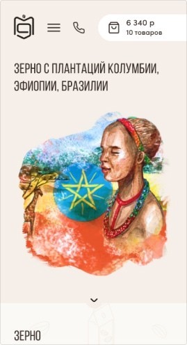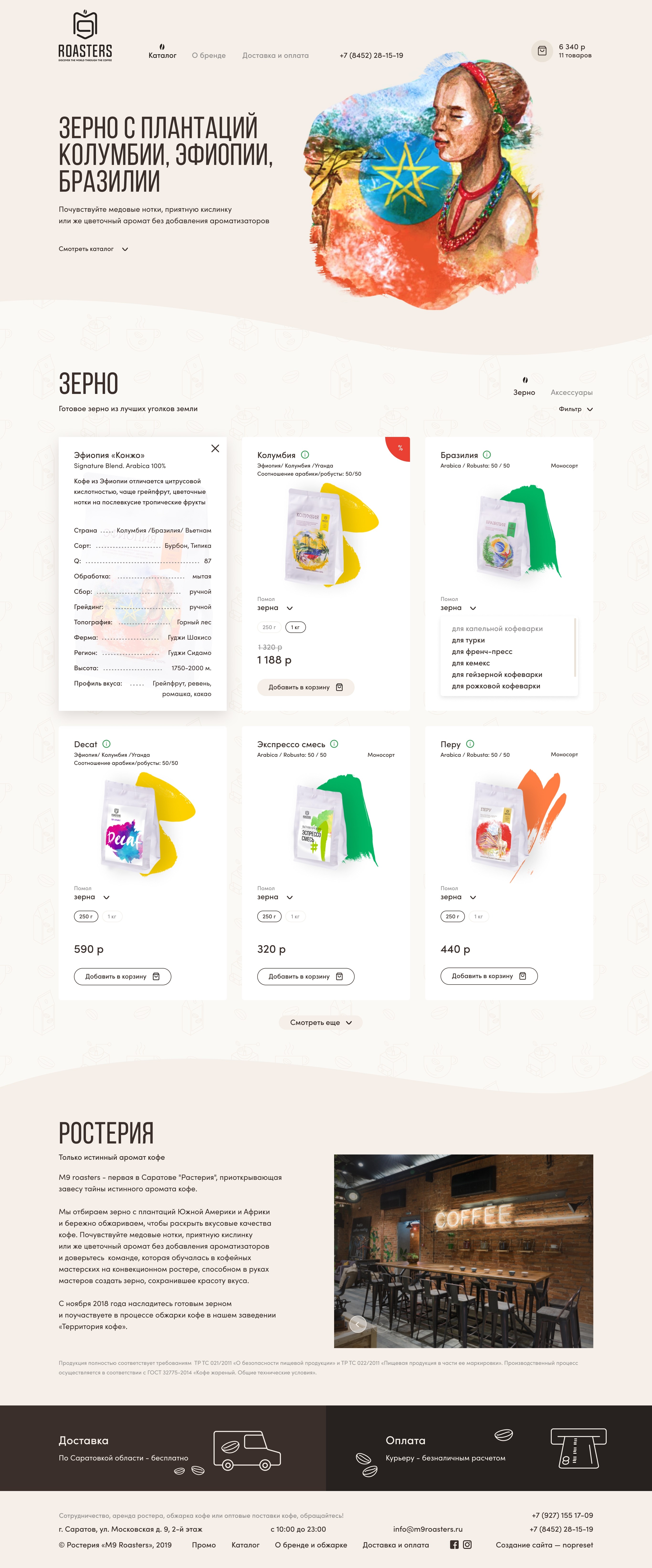 После небольшого промо с описанием, сразу идёт каталог кофе и аксессуаров.