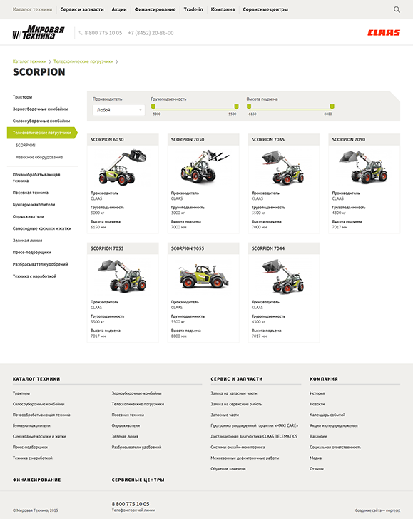 Каталог имеет разветвлённую структуру с разным уровнем вложенности и разными фильтрами в зависимости от вида техники, это позволяет быстро найти именно то что нужно.