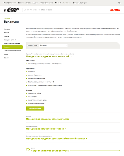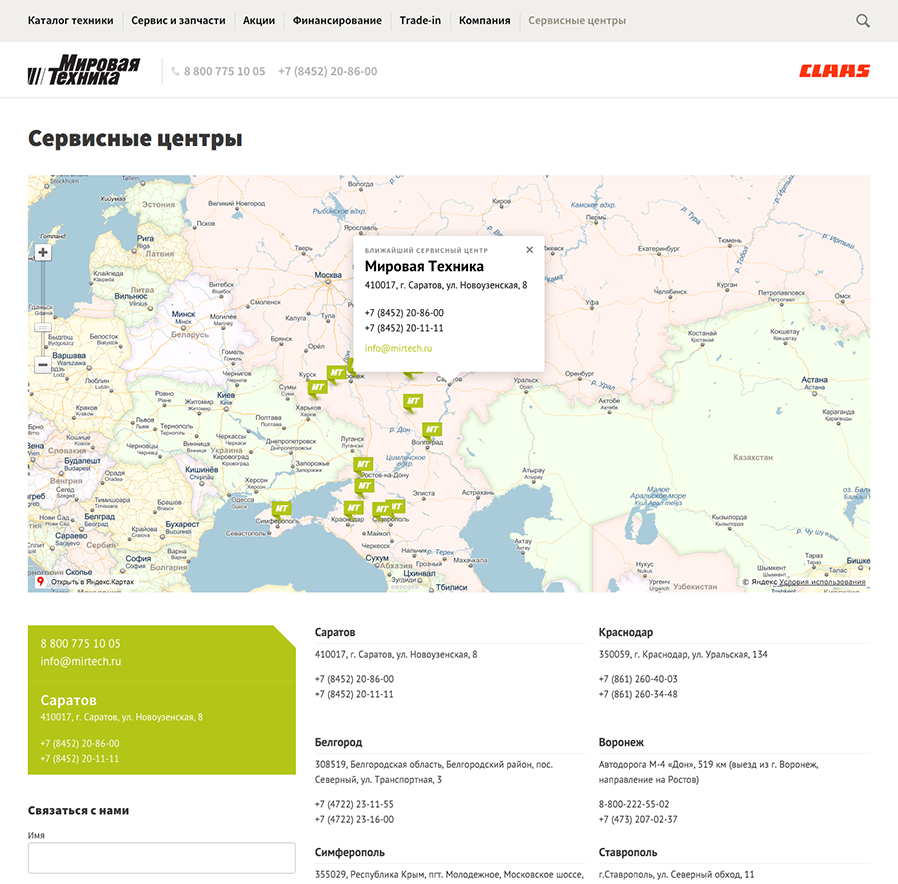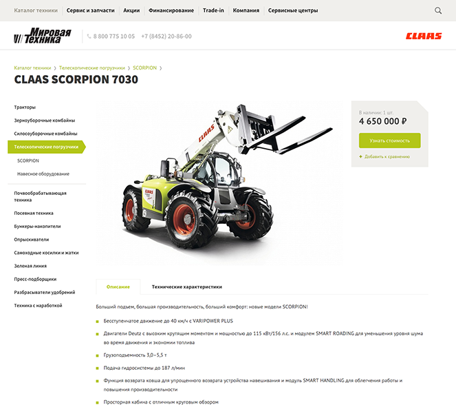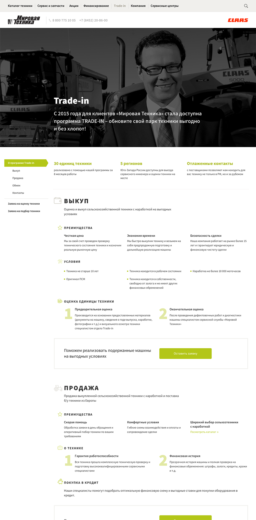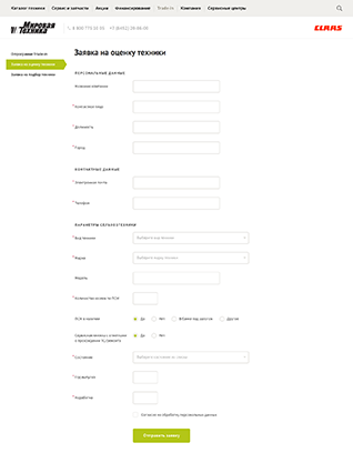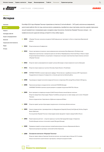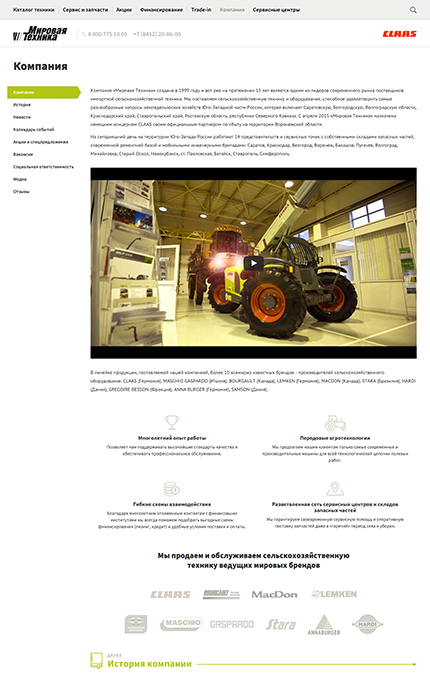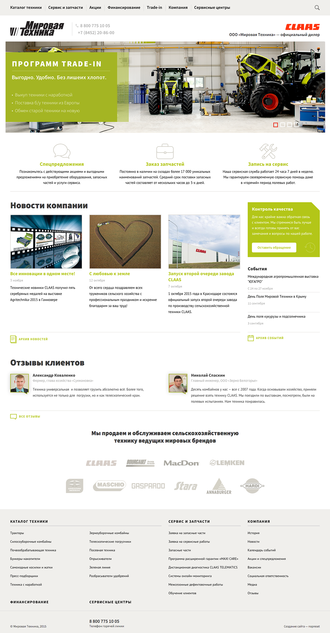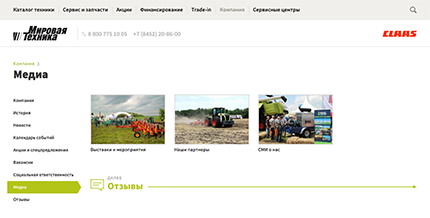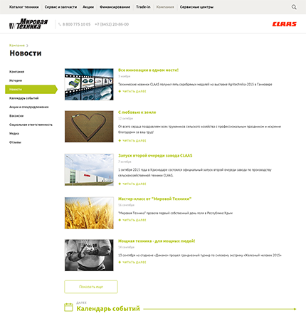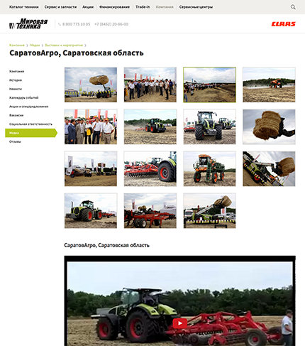 Одним из требований к проекту было использование фирменных цветов главного бренда «Мировой Техники» — Claas.