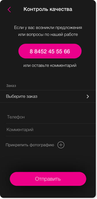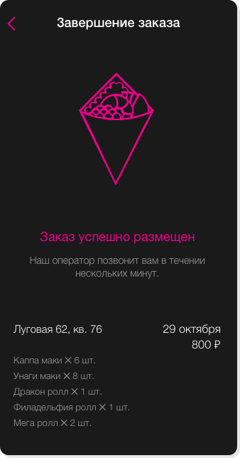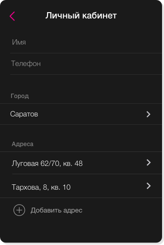 На главном экране показываем кнопку меню и действующие акции с кратким описанием.