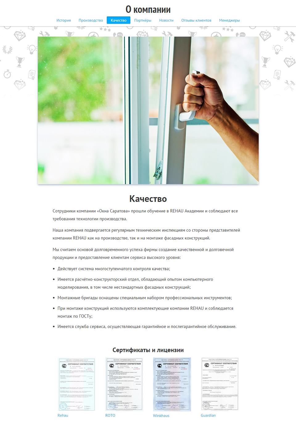 Создать уникальный и запоминающийся сайт для компании производителя окон для того чтобы выделиться на фоне однообразных конкурентов и увеличить количество заказов.
