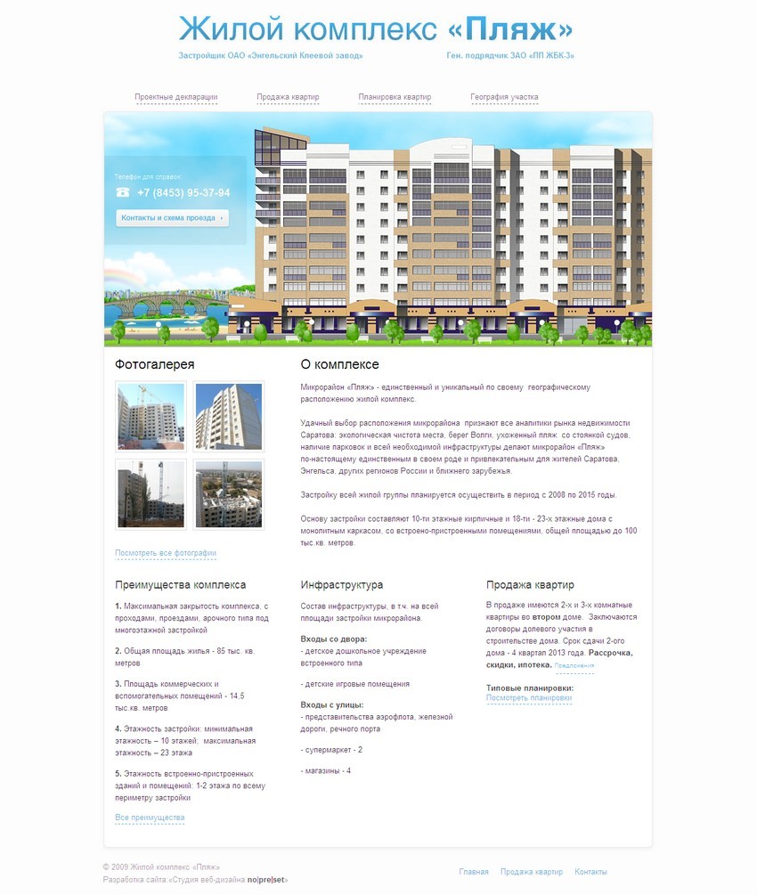 Сайт рассказывает о самом комплексе, этапах его строительства и публикует предложения о покупке квартир.