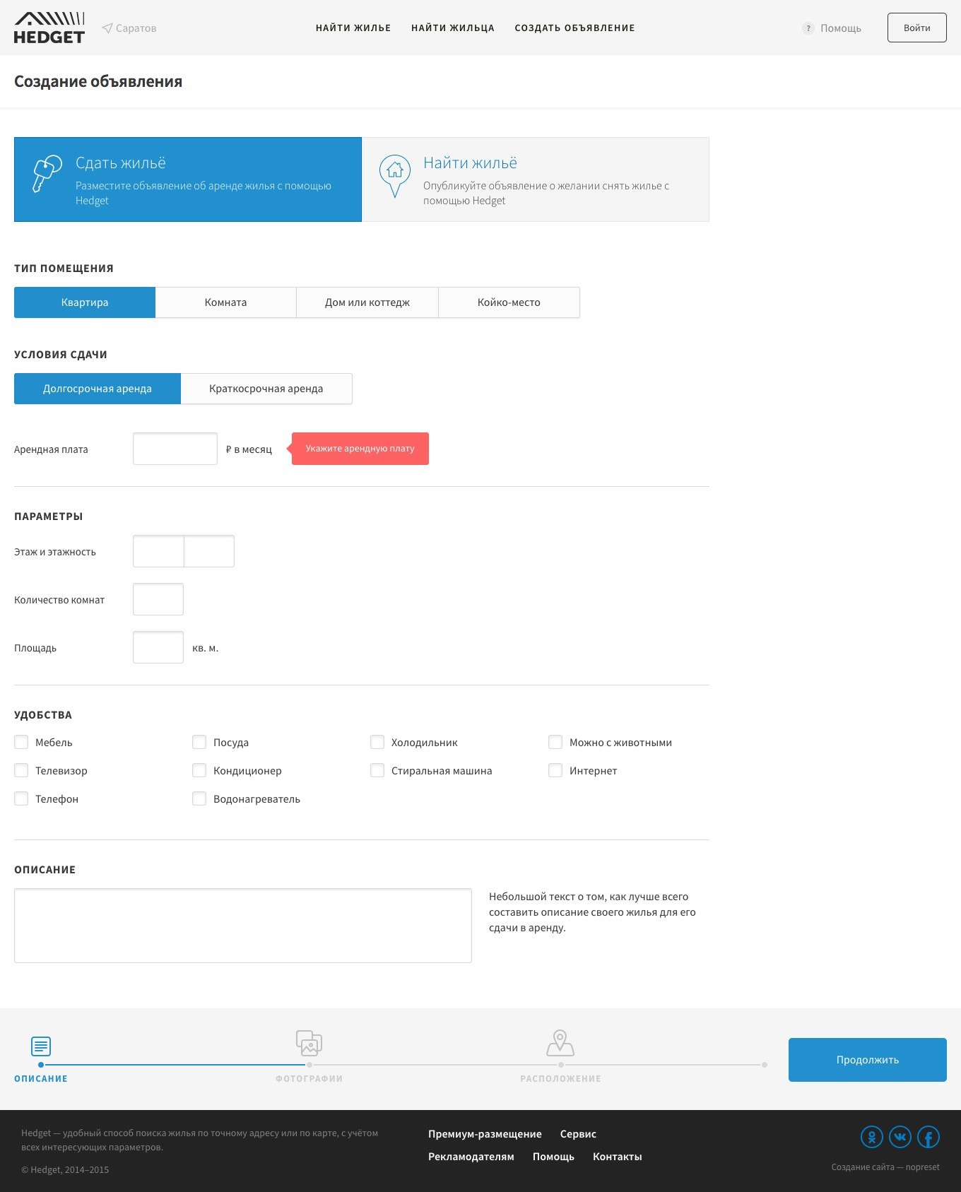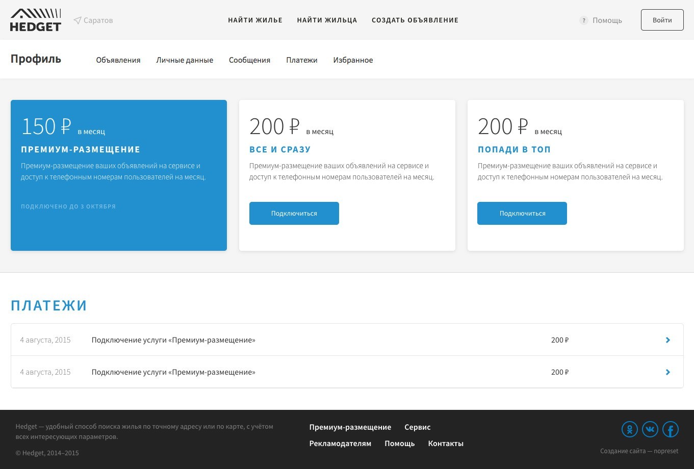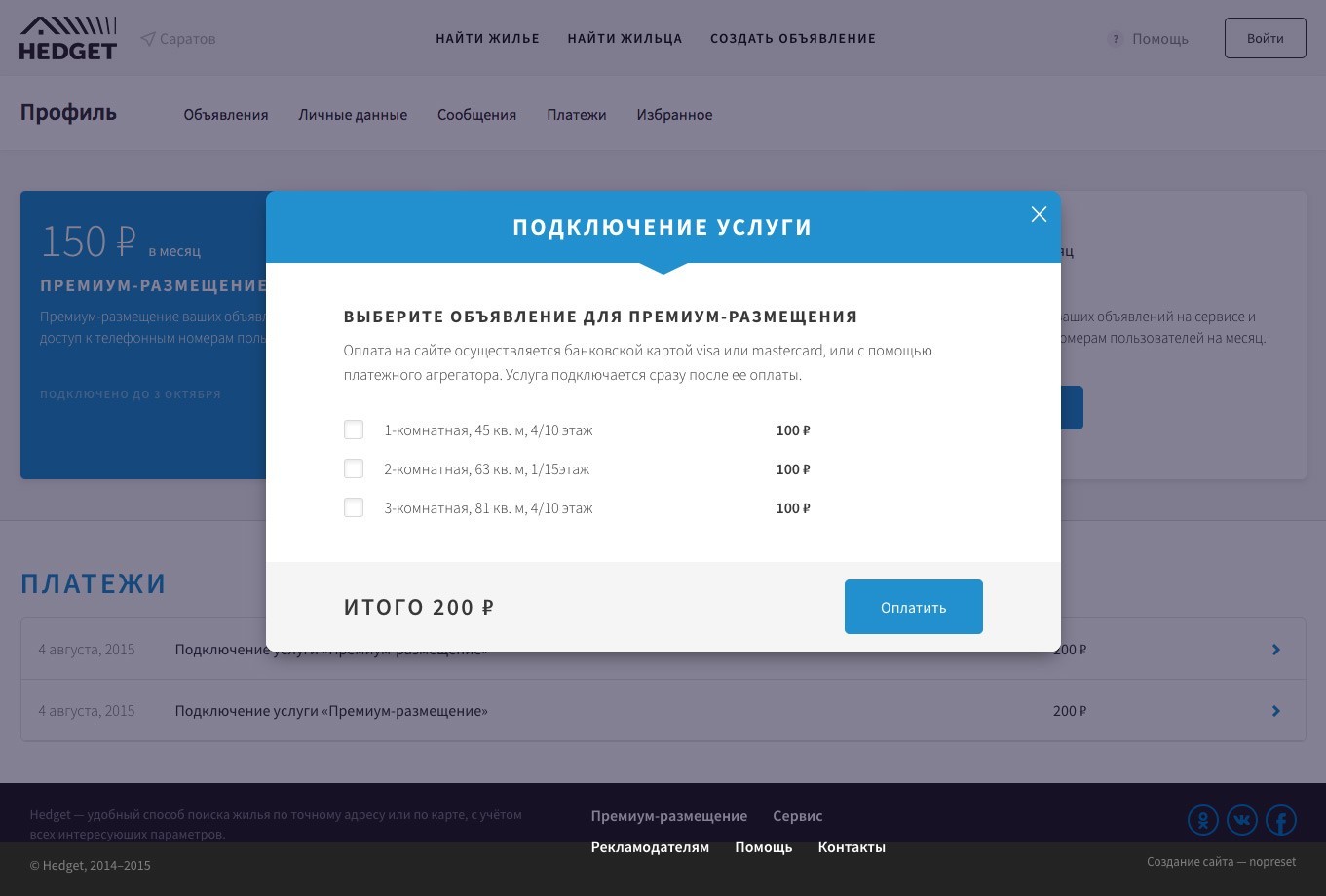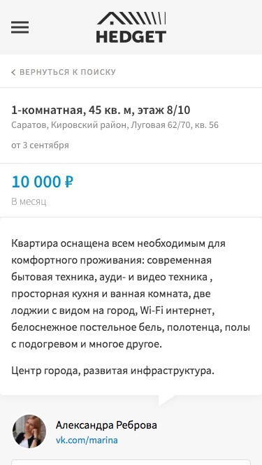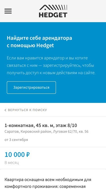 Разработка сервиса аренды жилья «Hedget»