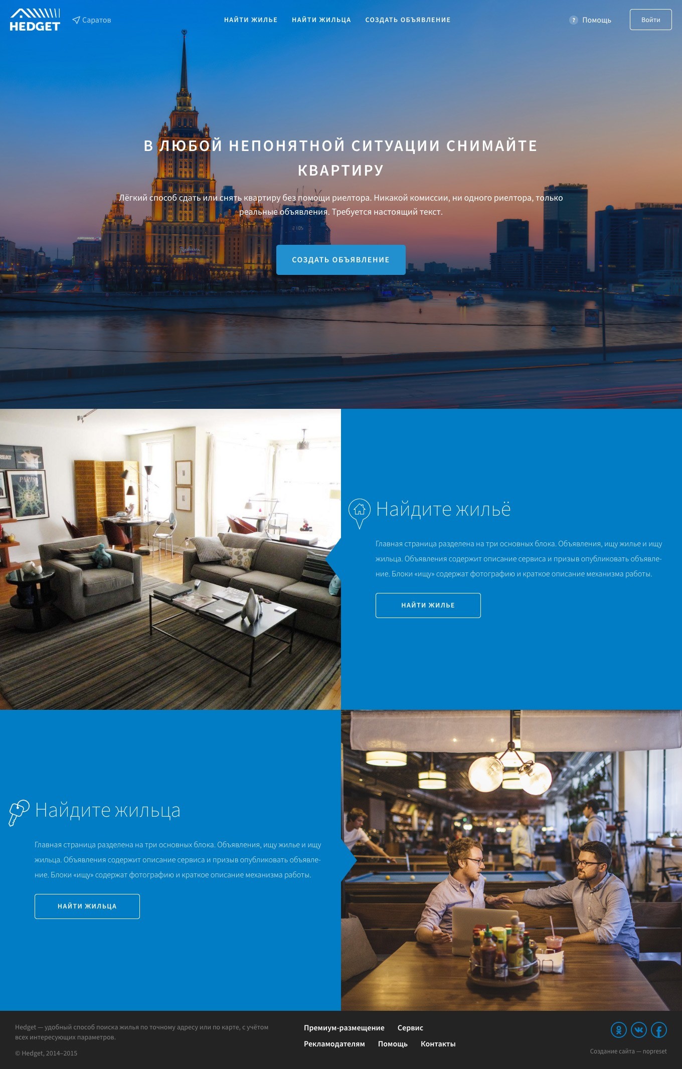 Сервис разрабатывался для возможности снимать и сдавать жильё без посредников хорошим людям.