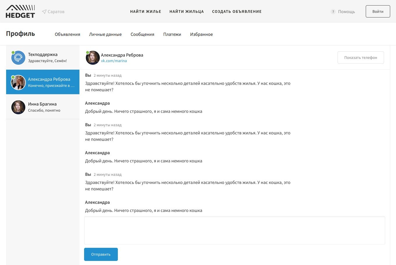 Те кто ищут жильё указывают примерный район и пишут о себе.