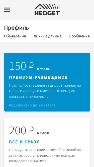 Количество объявлений для одного профиля ограничивается.