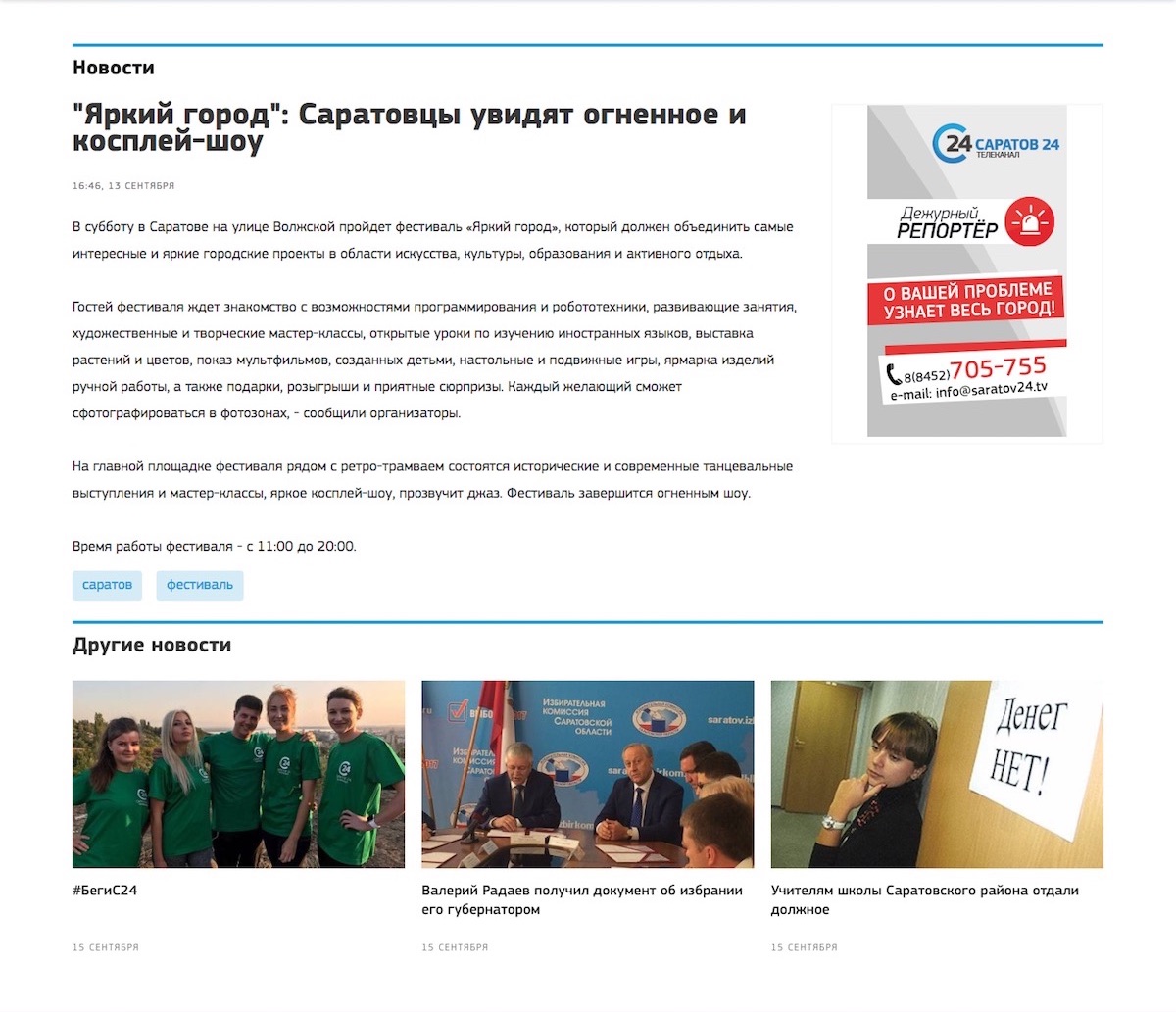 Сайт разрабатывался как визитка телеканала, но в процессе работы требования поменялись и потребовалось добавить новостной функционал, а сам сайт стал СМИ.