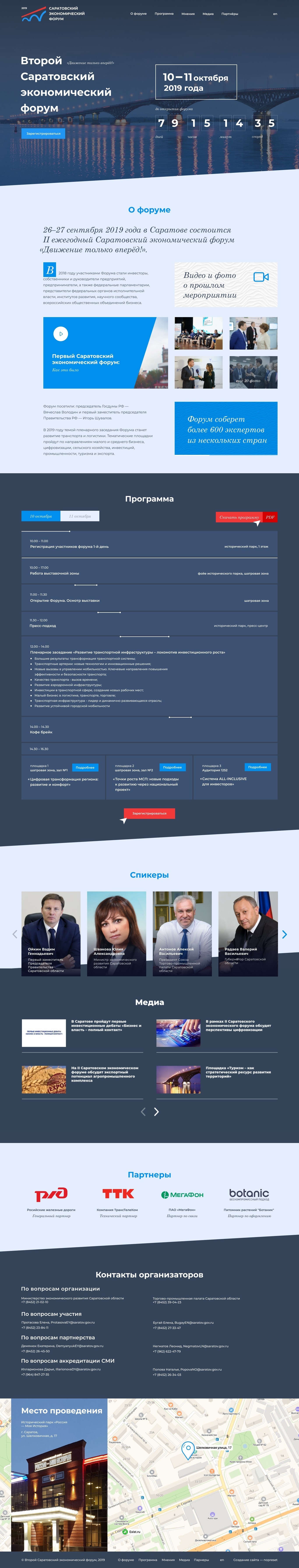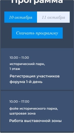 На главной странице разместили всю информацию: историю форума, программу, спонсоров и контактную информацию. Дополнительные страницы сделали для новостей и информации о некоторых площадках.