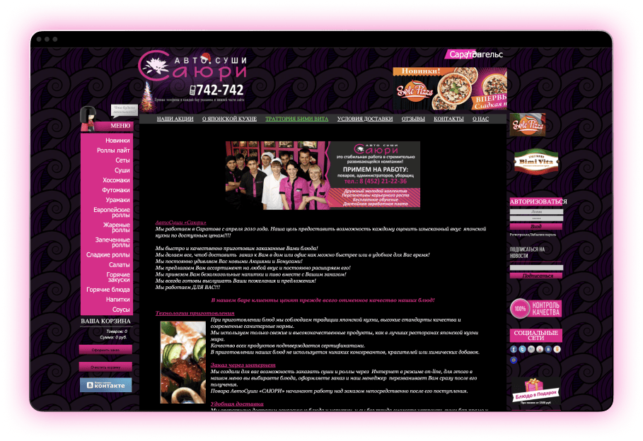 С сетью мы познакомились в 2015 году, тогда у Саюри был простой сайт с корзиной, но без интеграций с внутренними системами, что усложняло процесс заказа.