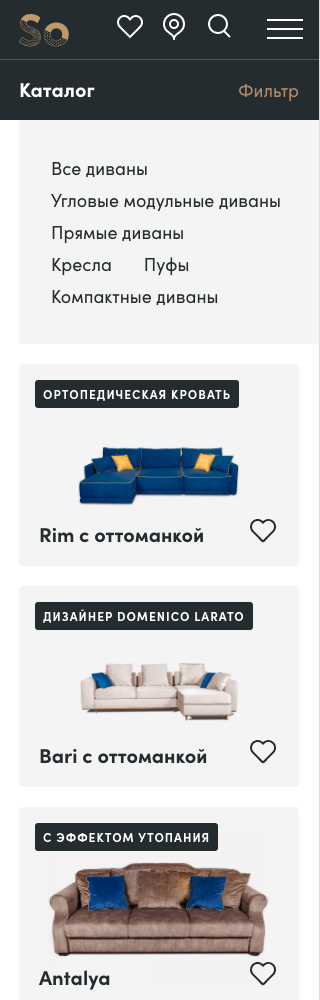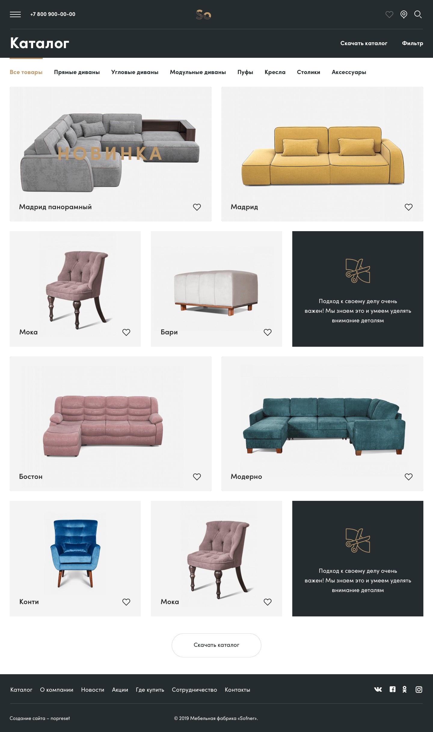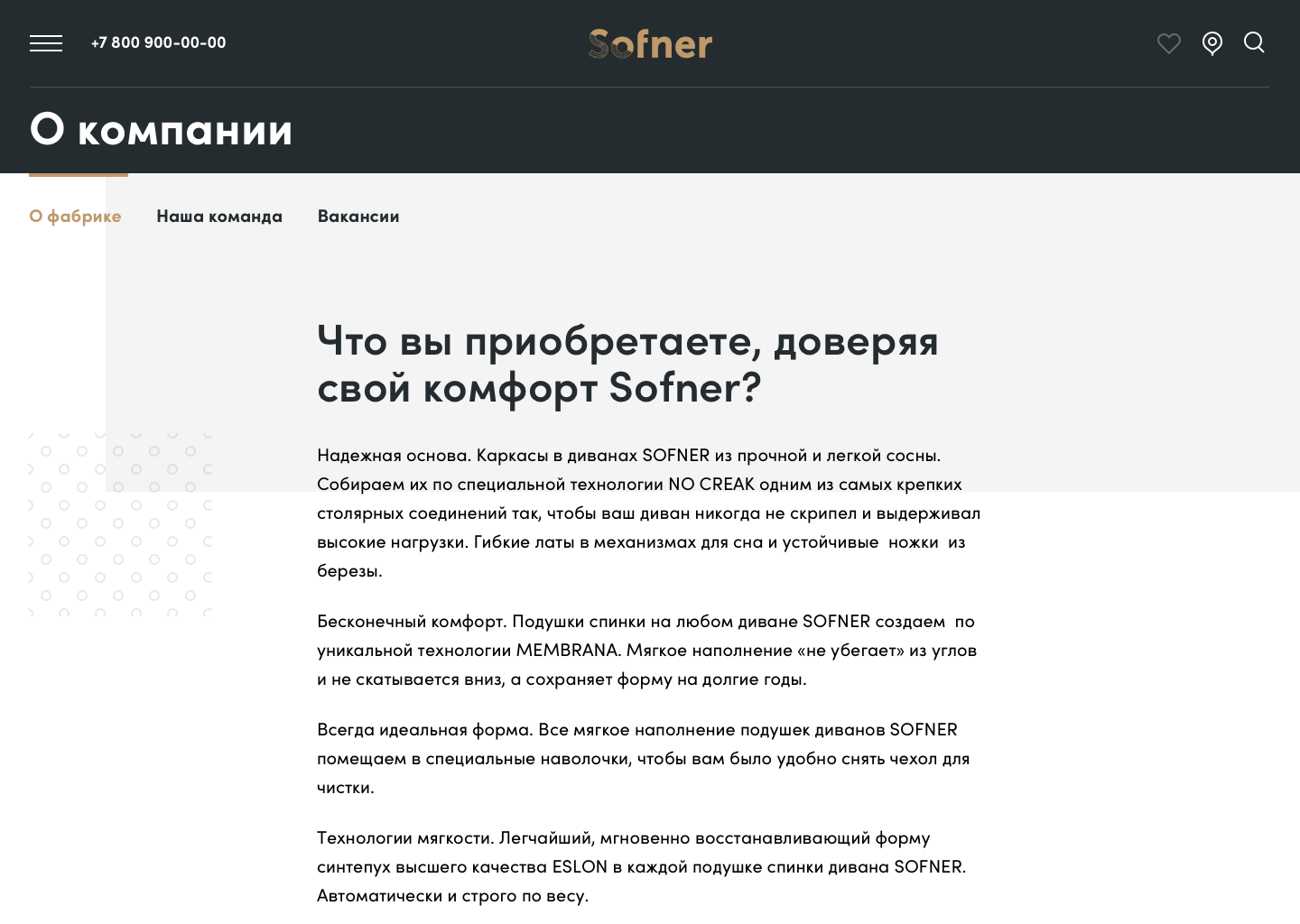 Сайт нового бренда мягкой мебели от сибирской фабрики с большой историей.