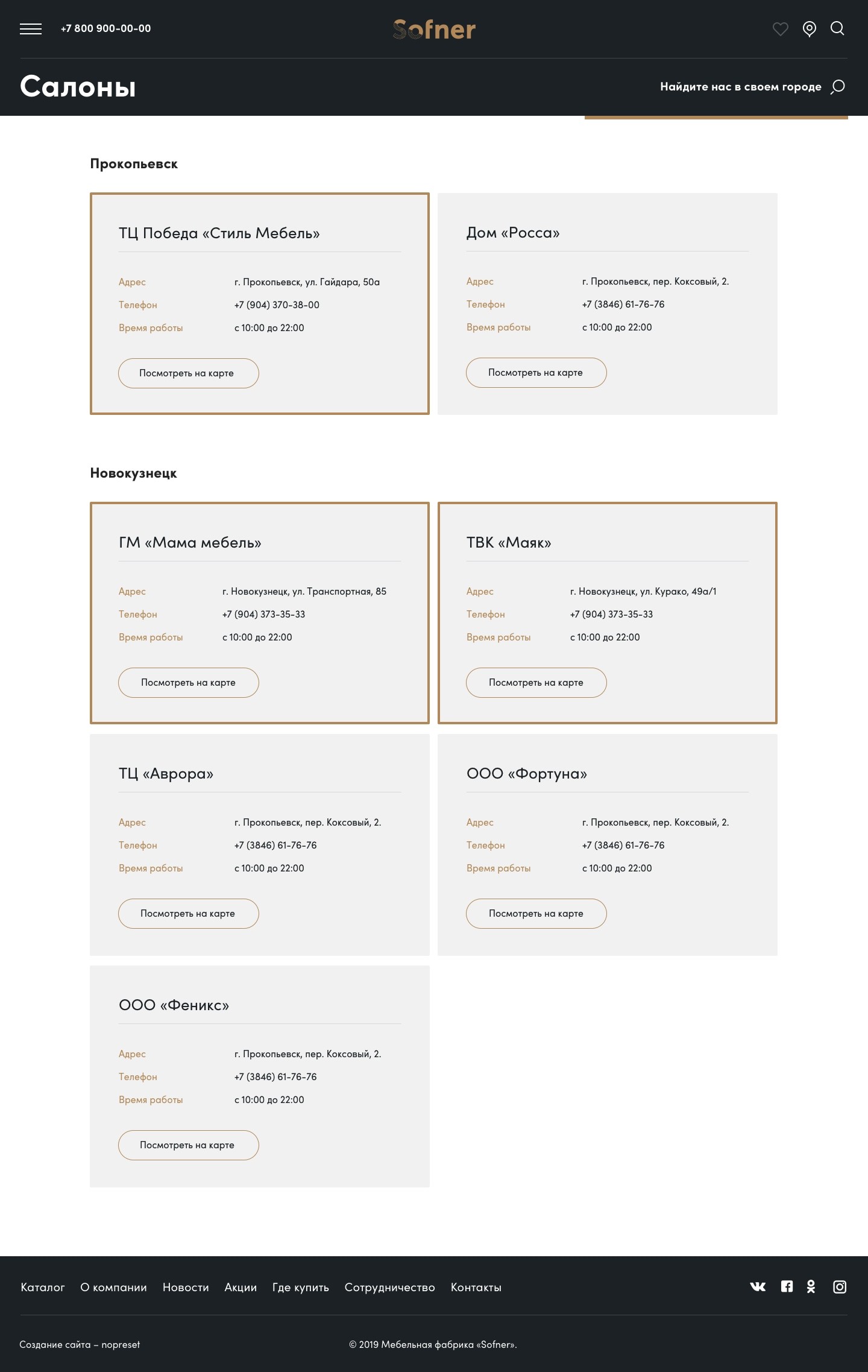 Пока точек продаж не очень много, уделили им чуть больше места и внимания.