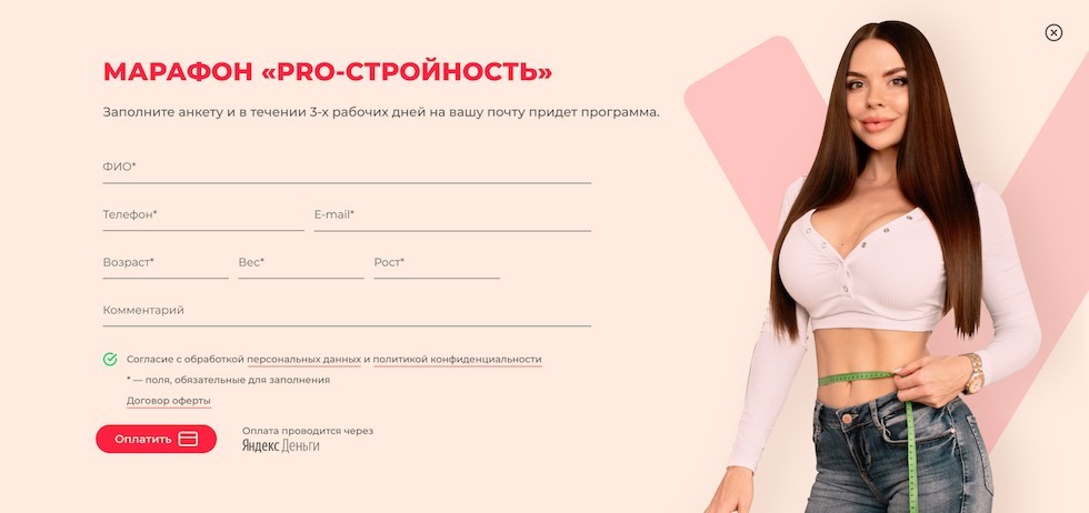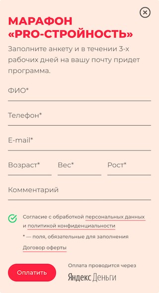 Анкета участника с нестандартными полями. Не часто встретишь форму, в которой нужно заполнить возраст, рост и тем более вес. Решение их добавить обусловлено целью участия и необходимостью отслеживать прогресс.