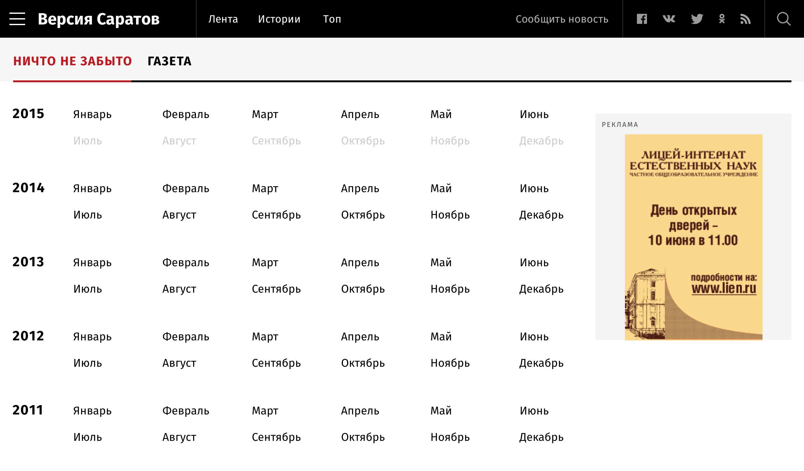 Накопившиеся за годы материлы, которые не получилась вписать в новую структуру, отправились в архив. Здесь можно найти выпуски печатной газеты десятилетней давности или прочесть о самом главном в каждом месяце с 2005 по 2015 год.
