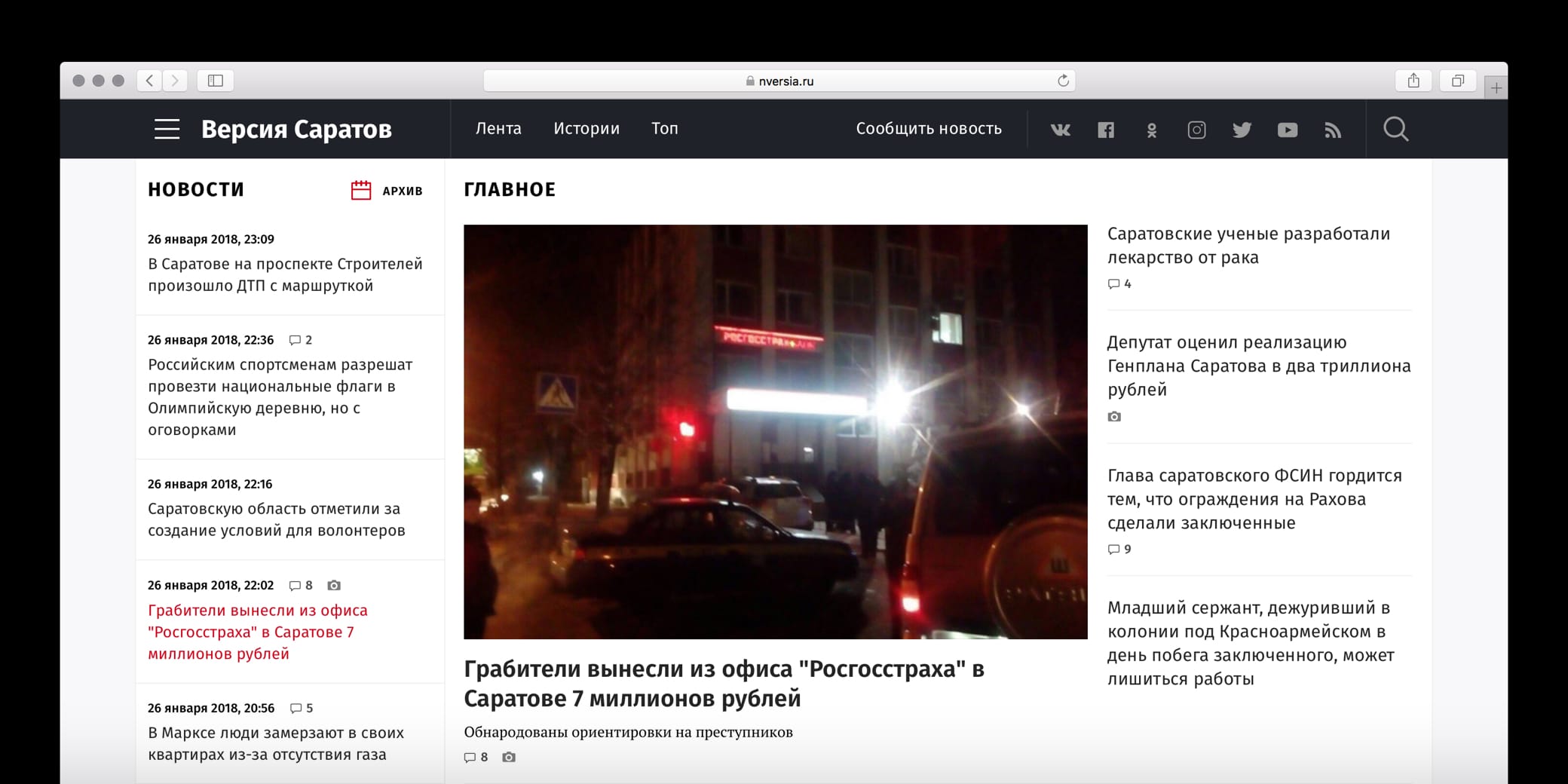 ИА «Версия-Саратов» входит в пятерку самых посещаемых новостных сайтов Саратова и области.