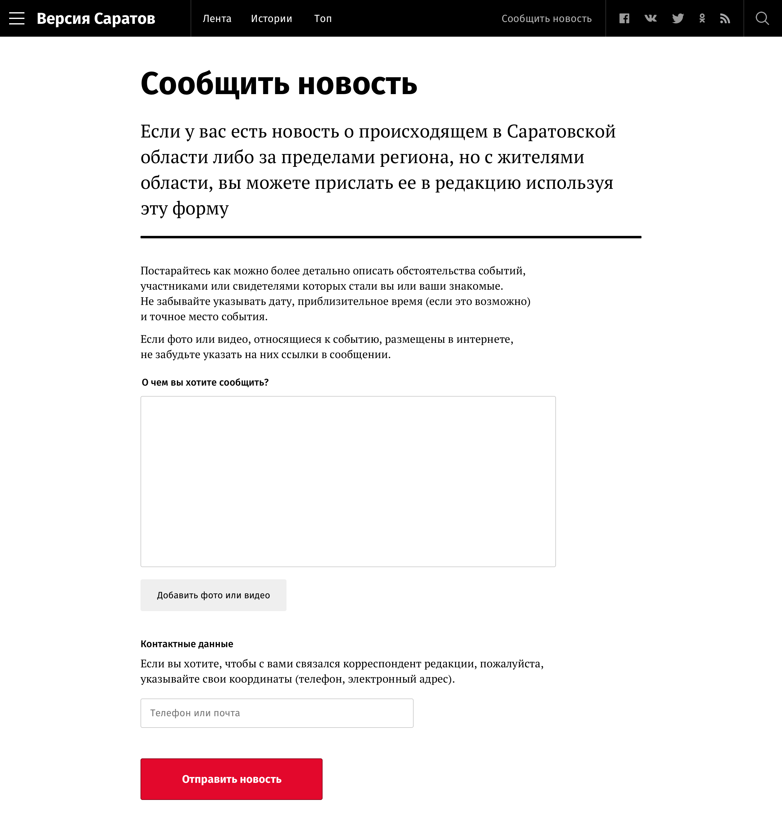 Для тех, кто не любит писать в социальных сетях, был добавлен раздел для связи с редакцией.
