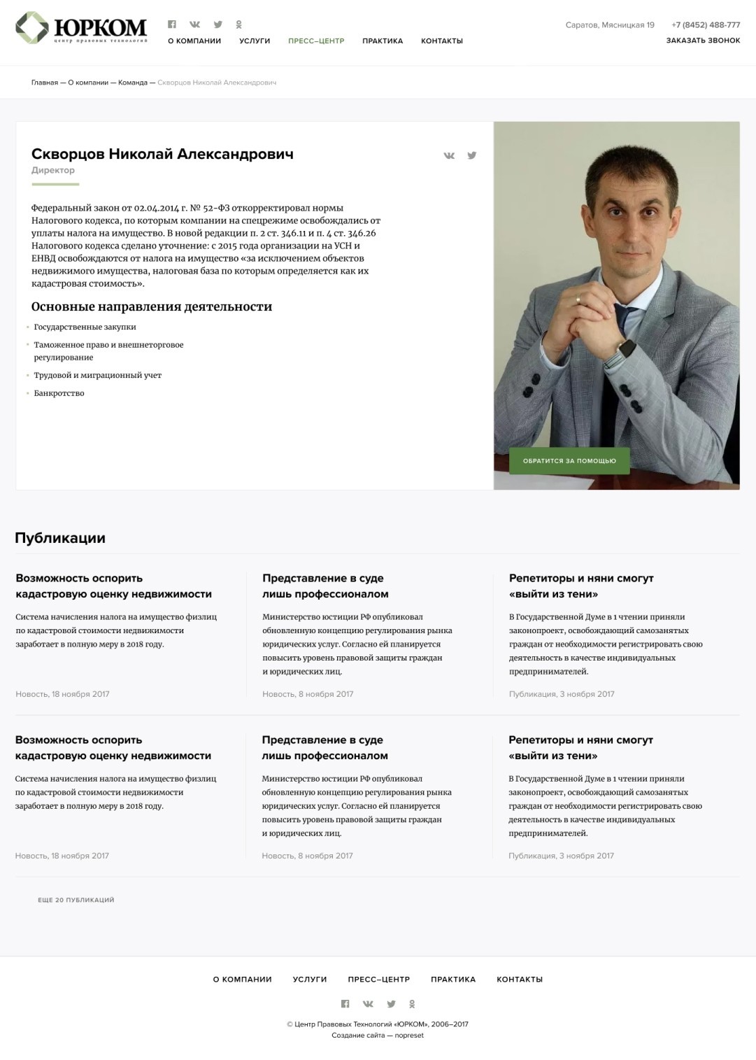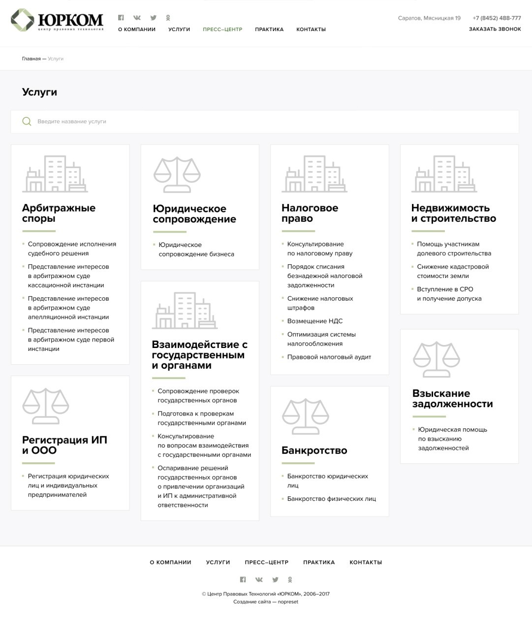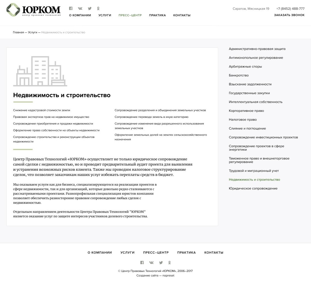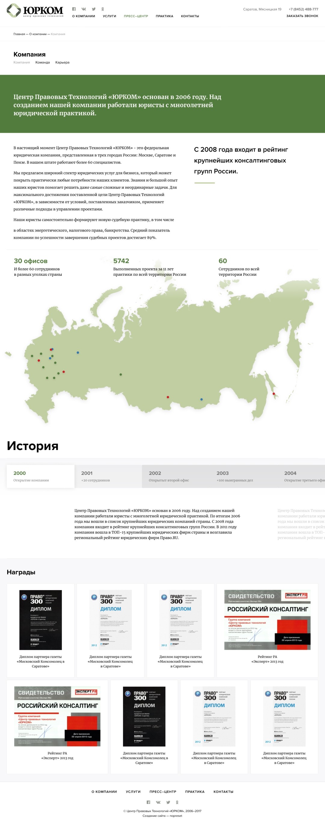 Оставили основной мотив подачи преимуществ через большие цифры, категории услуг, награды и новости.